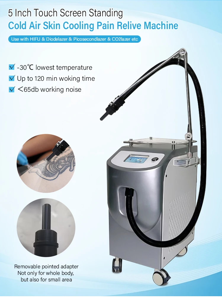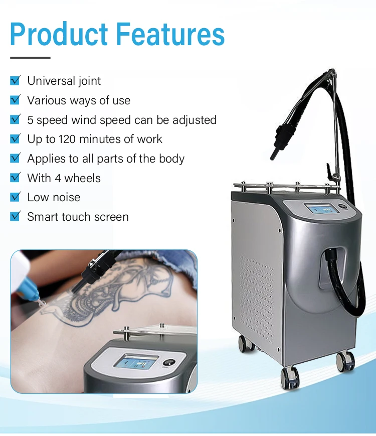 Professional Epidermal Protection for Laser & Aesthetic Treatments. Engineered to deliver targeted cold air at controlled temperatures, this advanced cooling system provides superior epidermal protection during high-intensity laser and aesthetic procedures—minimizing thermal damage, reducing pain, and ensuring a safer, more comfortable treatment experience for clients.